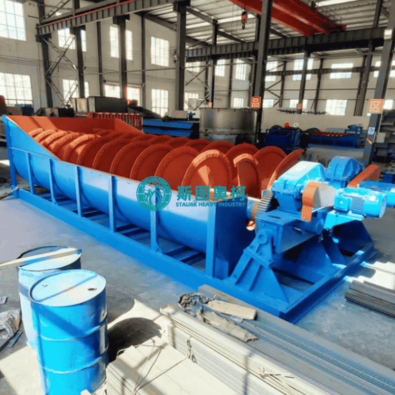 High Cleaning Efficiency: The continuous agitation of the spiral blades combined with hydraulic action effectively strips clay, dust, and organic impurities from the sand surface, reducing silt content to below 0.5%.